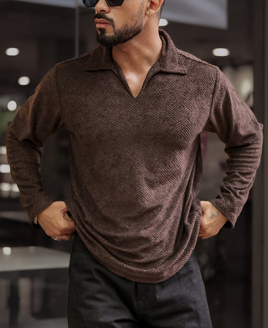 Forest Brown Regular Fit Full Sleeves Tshirt