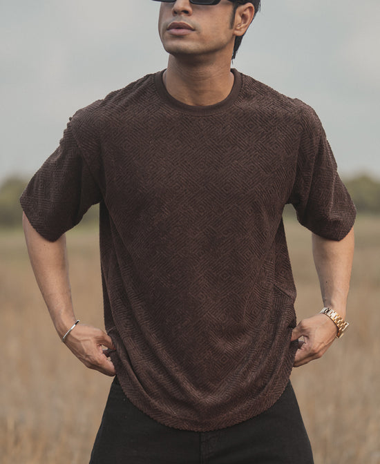 Stay cool and stylish in our forest brown structured oversized t-shirts for men, crafted from premium, breathable fabric, featuring drop shoulders and half sleeves. The subtle texture adds a unique touch, while the oversized fit ensures all-day comfort. Pair it with your favorite jeans for an effortless, laid-back look.
