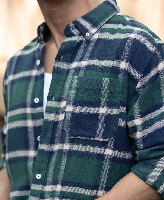 This green buttondown shirt blends rich tones with a clean check pattern, making it versatile for both weekday layering and weekend plans. The soft fabric gives all-day comfort, while the structured collar keeps your look sharp.