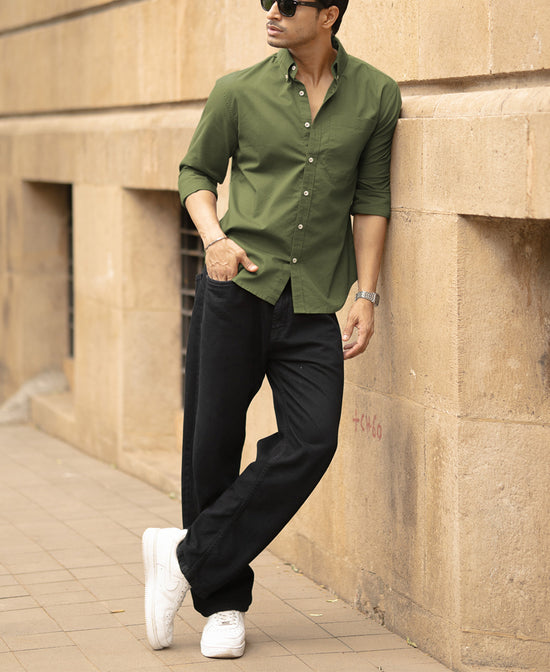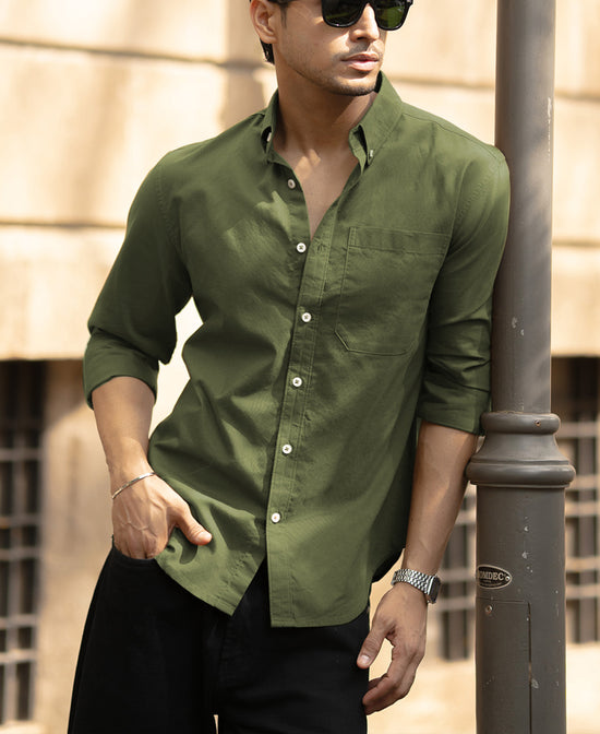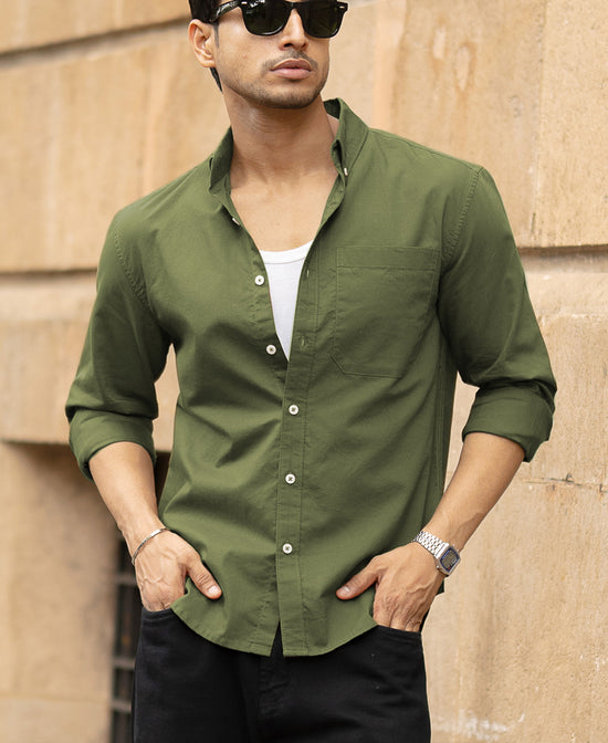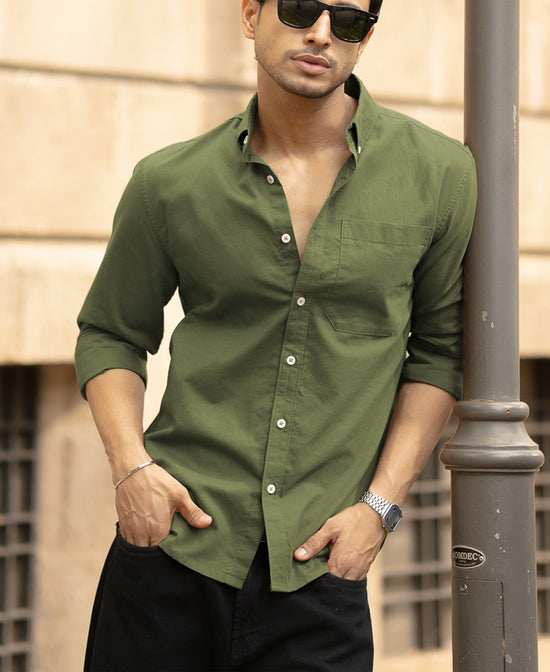 A clean canvas for good days. This green lightweight shirt brings a soft structure with a breezy finish, perfect for warm days or layering up. The fresh earthy tone adds an understated charm; pair it with denims, cargos, or just throw it over a white tee. Nothing complicated, just classic.