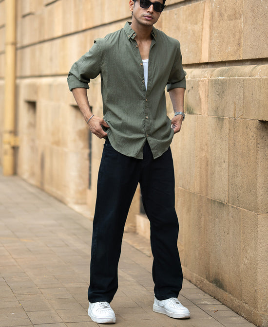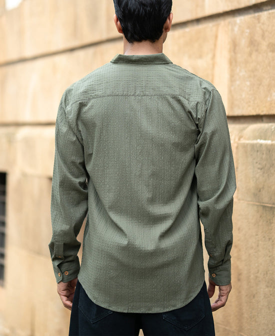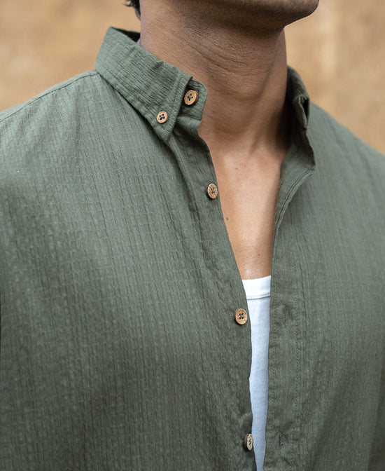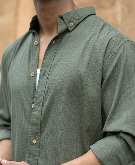With a soft green tone and light fabric, this structured shirt keeps you cool, calm, and collected—perfect for when you want to blend in… but still stand out.