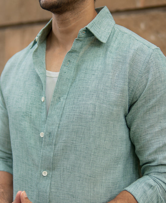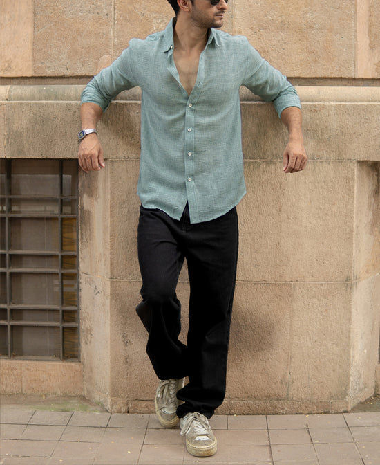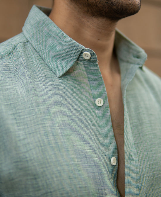 Inspired by coastal meadows and forest whispers, this Green Structured Lightweight Shirt is as refreshing as a breeze through leaves. Cool to the touch and balanced in hue, it’s designed for both movement and poise. The linen-blend fabric keeps it light, while the tailored cut ensures it stays sharp. A rare breed that complements both light & dark colour bottoms