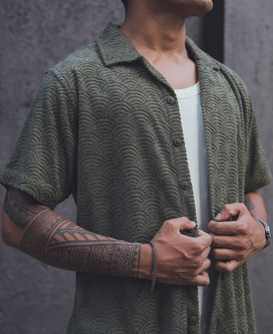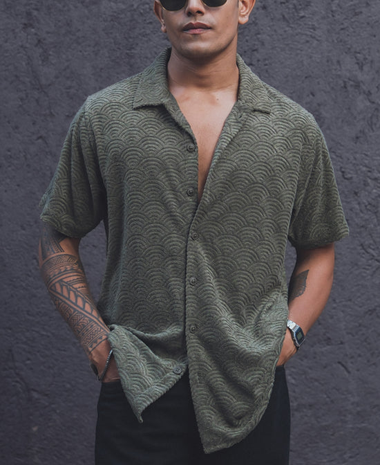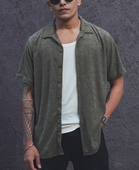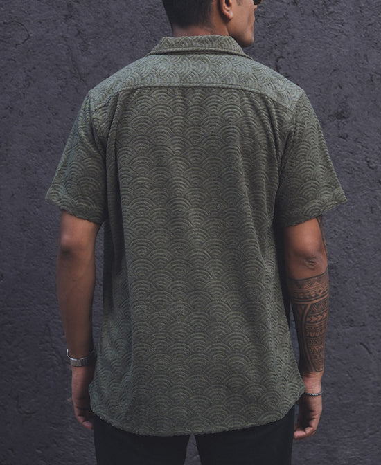 Green Structured Regular Fit Half Sleeves Shirt