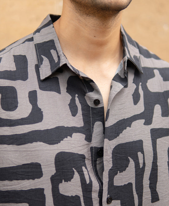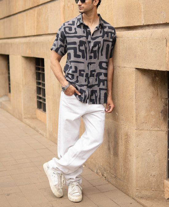 This Grey Abstract Print Shirt blends effortless style with easy-going comfort. The half sleeves give it a breezy vibe, while the abstract detailing adds just enough edge to stand out. Style it with black cargos for a cool monochrome moment or keep it chill with shorts. Soft, stylish, and seriously wearable.