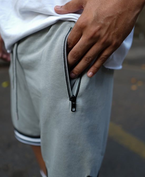 Grey Baggy Fit Shorts with Pocket Chain