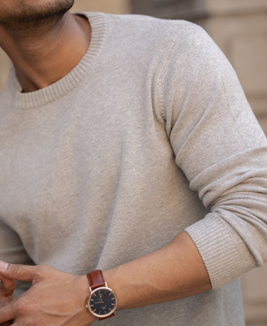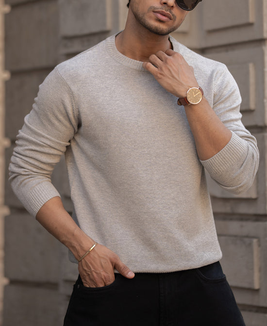 Grey and cozy. This cotton sweater brings the perfect balance of warmth and comfort. The full sleeves make it great for layering, while the regular fit means it won’t feel too bulky. It’s a simple go-to for when you want to stay warm without sacrificing style.