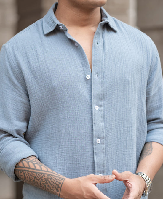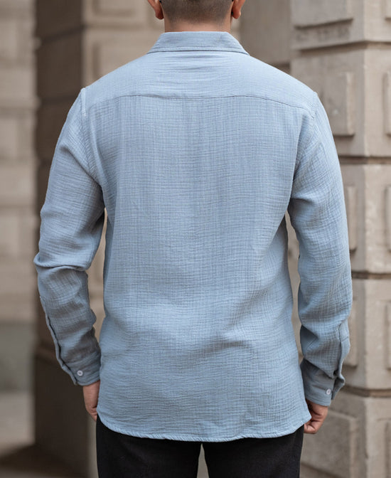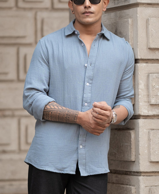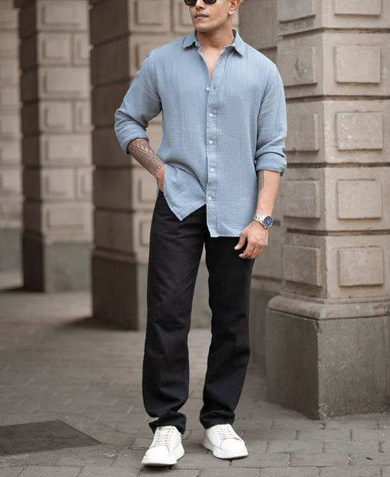 Grey Crinkled Regular Fit Full Sleeves Shirt
