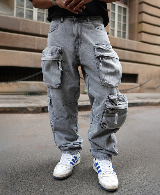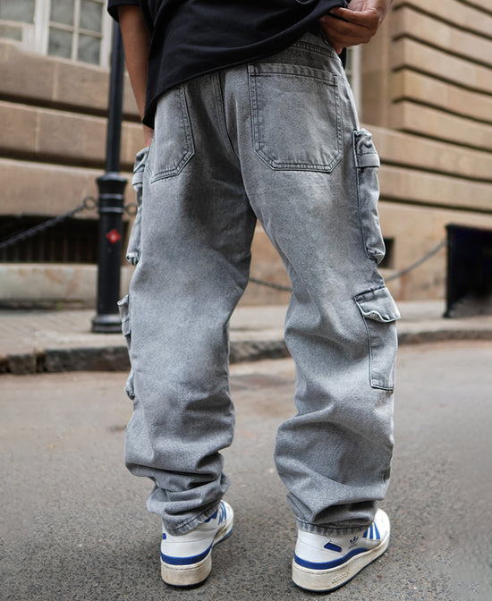 Living life on the go? Embrace functionality and style with our Grey Denim Baggy Fit Cargo Jeans for men, made from durable, high-quality fabric, these pants feature multiple pockets for essentials, a relaxed fit and an adjustable waistband to ensure maximum comfort. Ideal for outdoor adventures, running errands, or casual hangouts, they pair effortlessly with your casual wardrobe.
