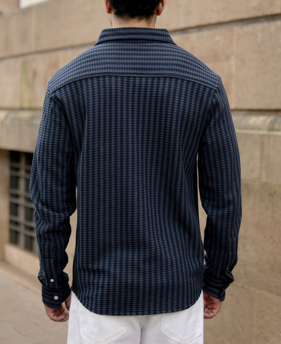 Grey Knit Structured Stripe Shirt
