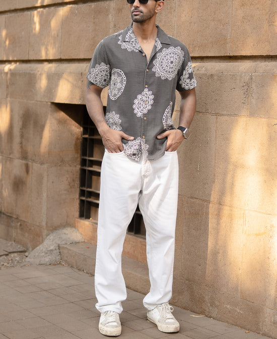 Grey Mandala Print Shirt