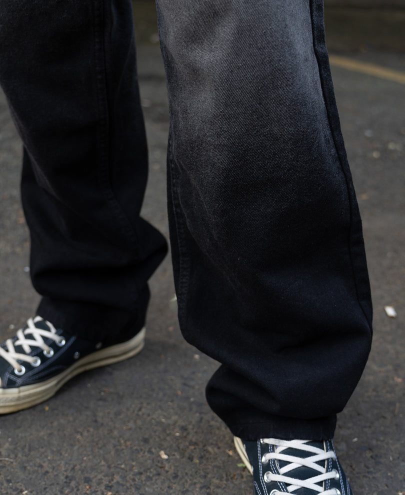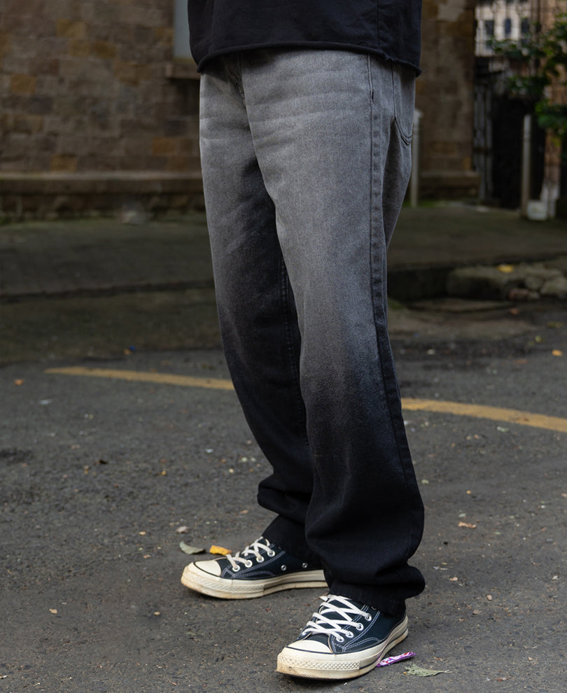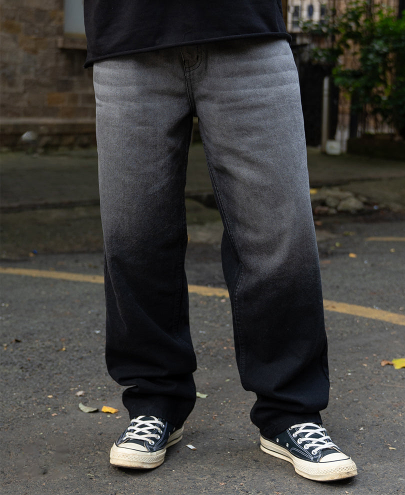 These jeans blend comfort with attitude, featuring a gradual grey ombre wash and a relaxed, baggy silhouette. Soft denim construction ensures easy movement, while the unique fade adds a modern street-ready touch.