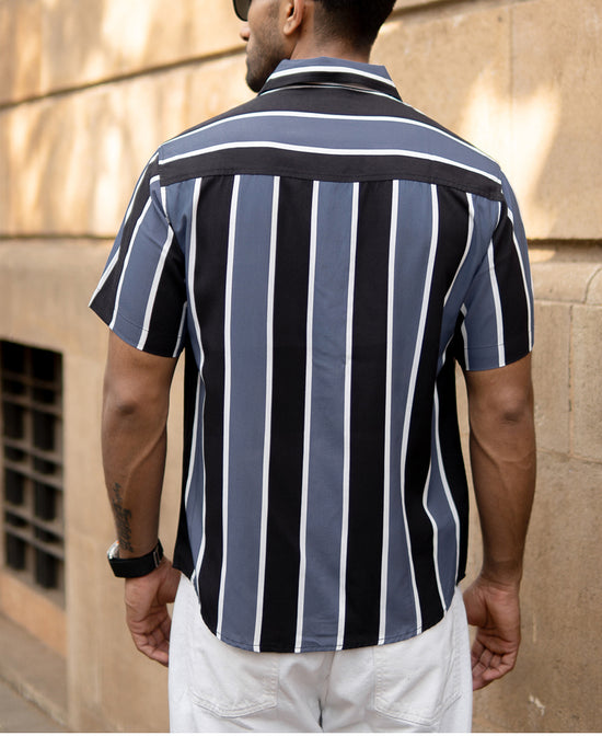 Bold verticals, but make it breezy. This grey printed stripe shirt isn’t just about symmetry—it’s about making statements. The classic collar and clean silhouette give it polish, while the punchy stripes add a laid-back edge. Pair it with denim or tapered trousers; this one’s made for moods that swing between serious and spontaneous.