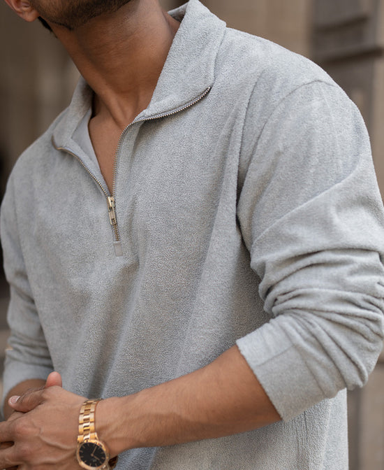 A polo with a little extra. This grey quarter-zip tee blends sporty ease with a clean, structured vibe. The regular fit keeps it breathable, while the zip detail gives it a slick edge. Perfect for days when you want to switch things up without going overboard.