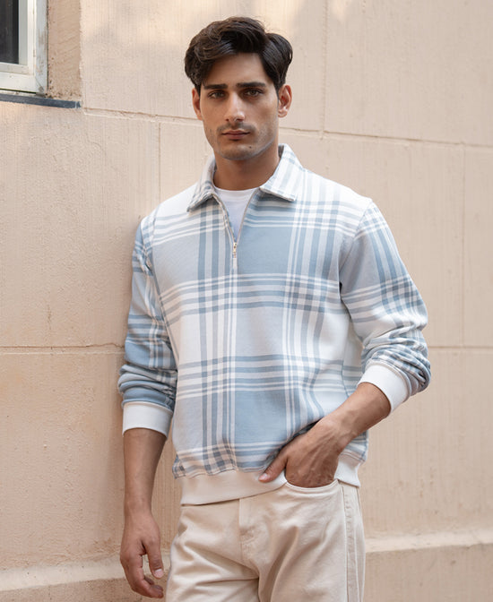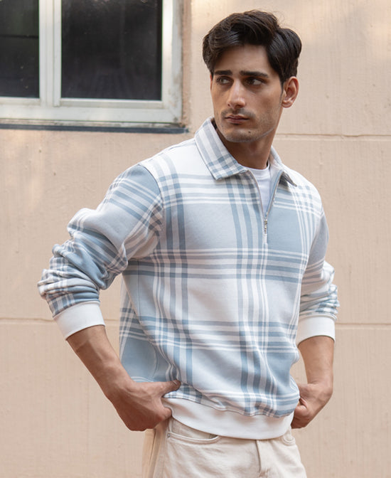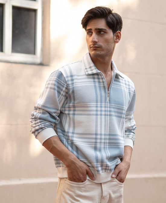 Soft like a winter morning, cool like a city breeze. This grey checked sweatshirt blends comfort with clean street style. The subtle check pattern keeps it interesting without going loud. Perfect for coffee runs, casual Fridays, and everything in between.