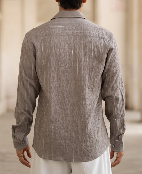 Stripes done right. This grey full-sleeve shirt brings a smart and subtle pattern to your wardrobe. With its regular fit, it’s a no-brainer for the man who likes his style straightforward yet impactful. Reliable for workdays, relaxed for weekends—it’s the perfect blend of comfort and charm.