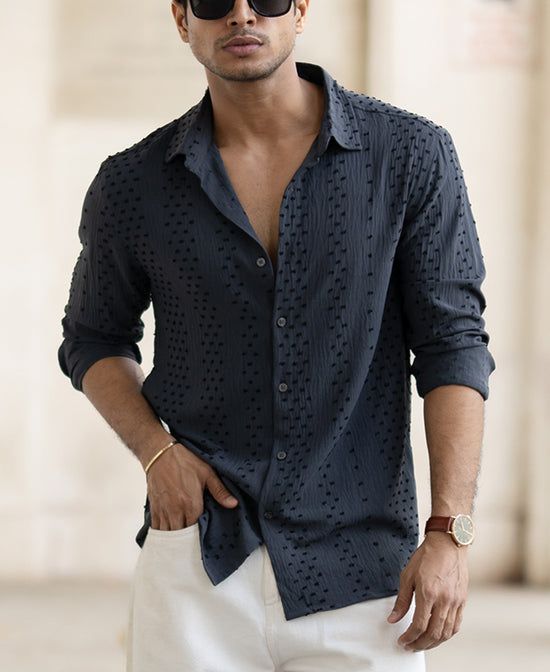 This isn’t just a shirt; it’s a statement. The Grey Structured Flowy Regular Fit Shirt is for the man who knows that looking sharp doesn’t mean giving up comfort. Made from 100% polyester, it’s smooth, effortless, and just structured enough to let the world know you mean business—whether that’s sealing deals or stealing glances.