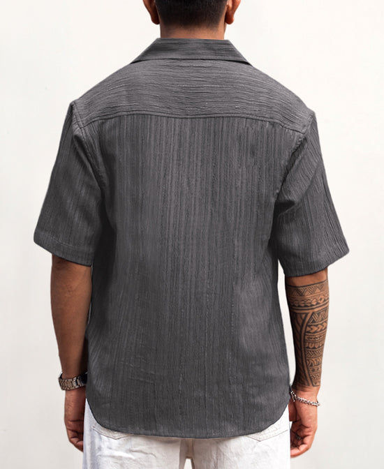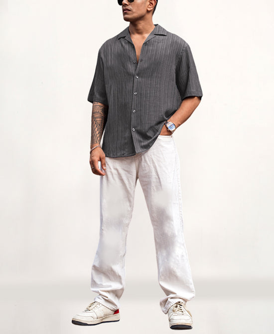 A must-have for your all-seasonal wardrobe, our grey structured oversized shirts for men, made from premium fabric are perfect for hot beach days or elegant evening events. The relaxed fit pairs perfectly with baggy pants, creating a crisp and stylish look. This versatile shirt effortlessly transitions from casual to chic, ensuring you look great all day long.
