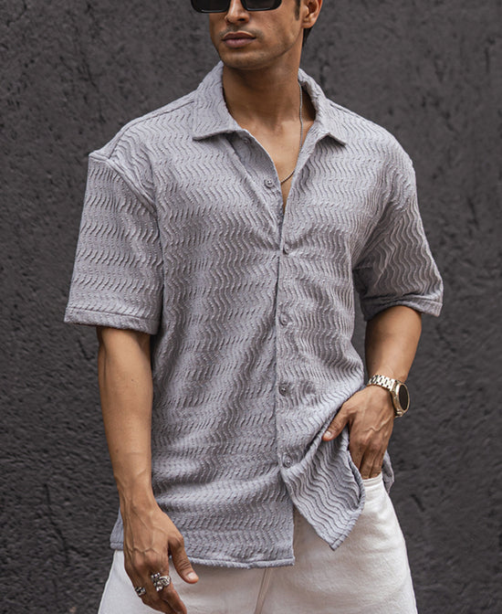 Your search for a statement piece that echoes your unique style ends here! Get your hands on this Grey Structured Oversized Half Sleeves Shirt. This shirt seamlessly blends functionality with fashion, offering practicality without compromising on style. It ought to become your favorite casual!