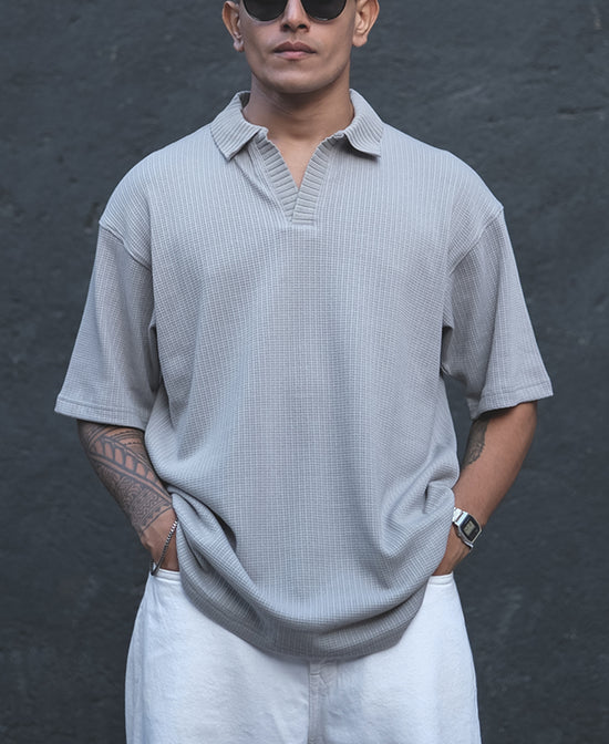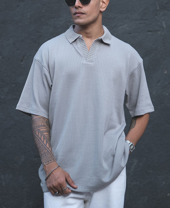 Upgrade your comfort game with this grey structured oversized half-sleeve T-shirt. Made with a Cotton blend that feels amazing and the structured fabric elevates the basic style. Whenever you go with this T-shirt the spotlight will always be on you.