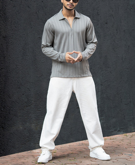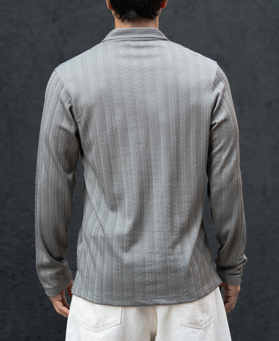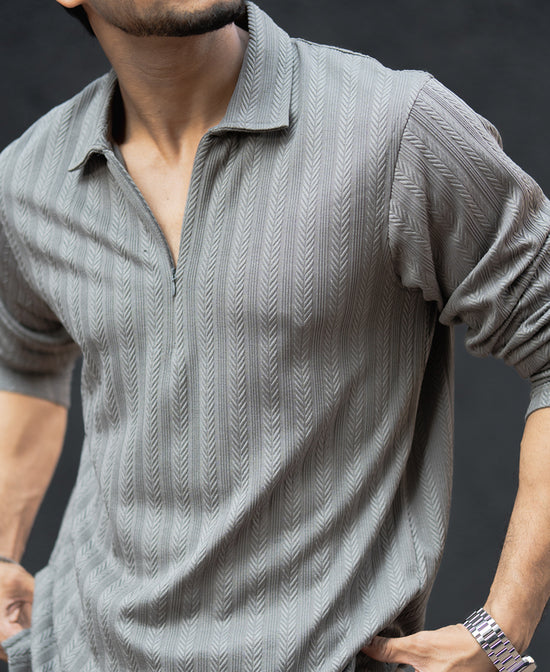 Grey Structured Regular Fit Full Sleeves T-Shirt