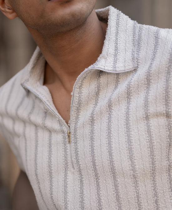 Stripes meet structure in this grey regular-fit t-shirt. Perfect for men who want a touch of detail without overdoing it, this tee strikes the right balance between casual and sharp. Whether you're hustling at work, chilling with the boys, or stepping out on a date, this striped t-shirt for men makes sure you look the part regardless of the preparation.