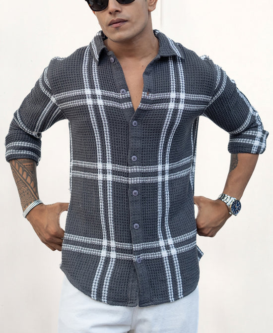 Grey Waffle Checks Regular fit Full Sleeves Shirt