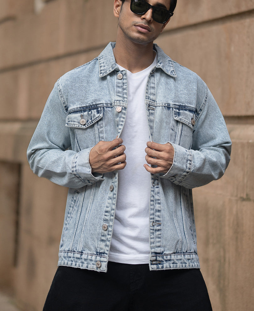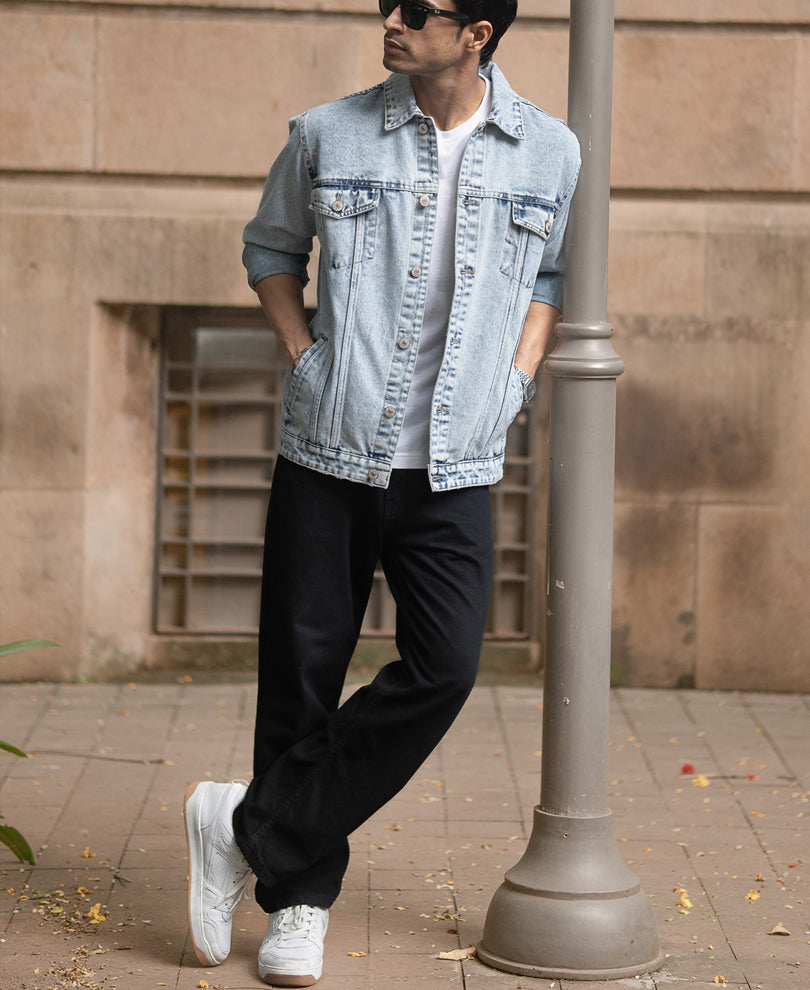 Cool as it looks, this ice blue denim jacket is a statement in effortless layering. Washed to perfection with a relaxed fit, it gives vintage charm with a modern twist. Wear it over a plain tee or throw it on with hoodies; this one’s built for all seasons.