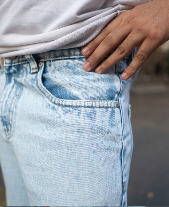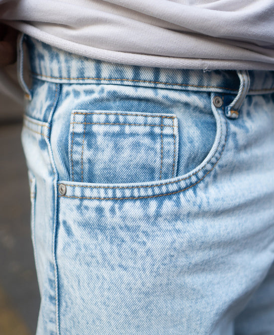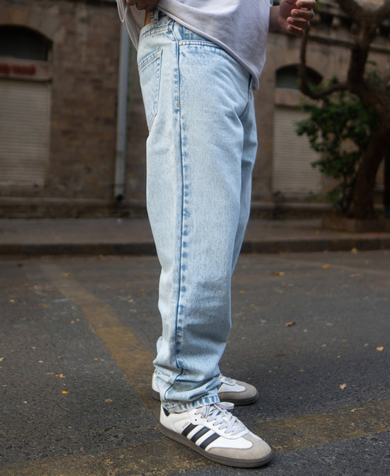 Ice blue and always cool. These baggy-fit jeans bring a fresh take on denim. The light color gives off a laid-back vibe, while the fit ensures you’re always comfortable. Whether it’s a quick hangout or a casual day out, these jeans add just the right touch.