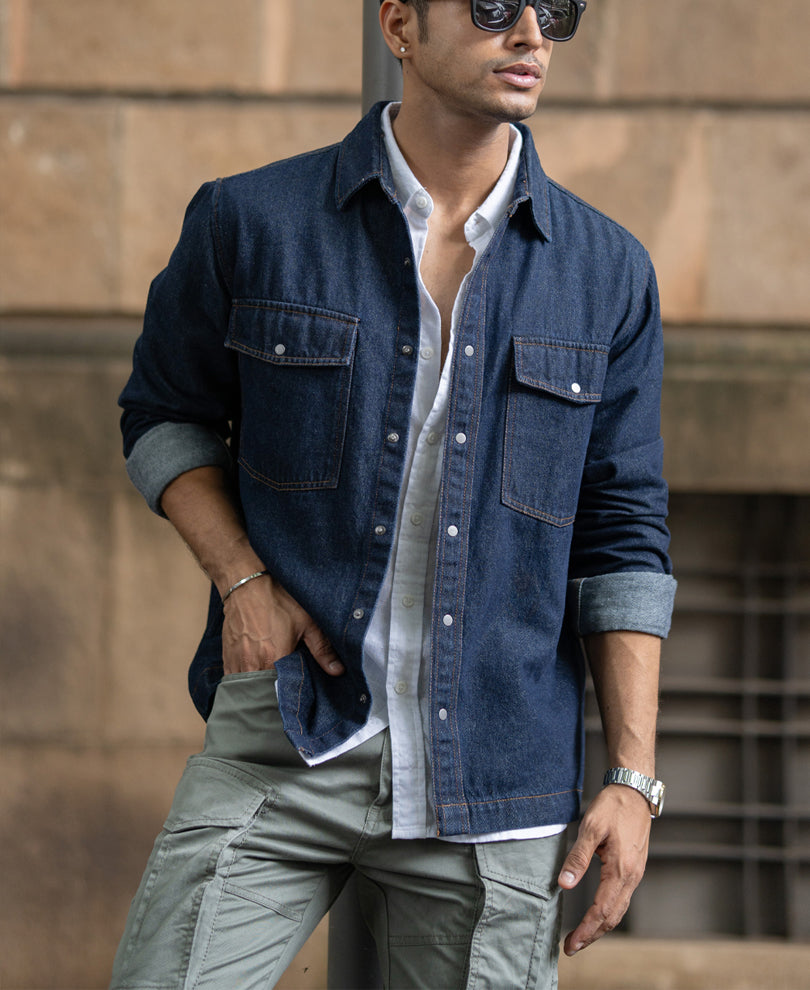 Presenting a shirt that promises the classic Indian craftsmanship with a modern weave. The Indigo Denim Overshirt channels that lived-in feel of true denim, elevated with clean stitching and dual chest pockets. Its rich indigo wash gives it a depth that pairs as well with chinos as it does with black jeans; it's also perfect for effortless layering.