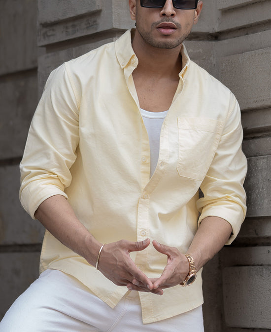 Bright without being loud. This lemon-yellow shirt adds a fresh pop of color to your lineup, with a fit that keeps things casual yet polished. Perfect for days when you’re in the mood to shake things up without trying too hard.