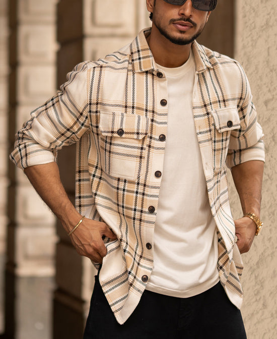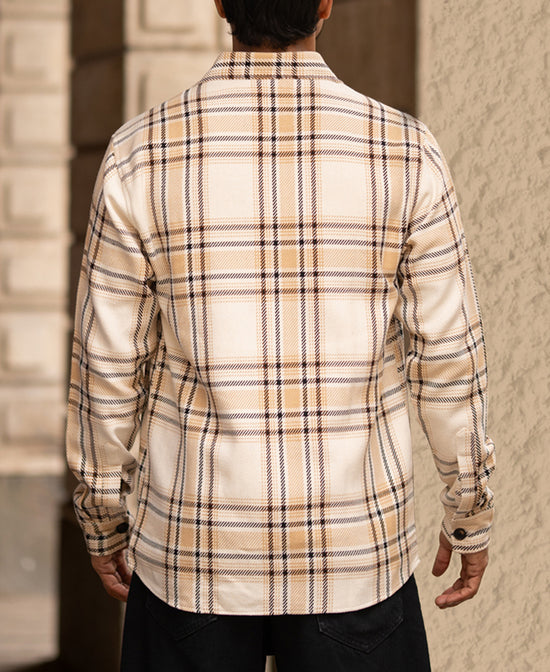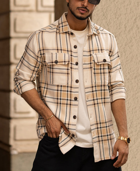 Light Beige Full Sleeves Double Pocket Regular Fit Shirt