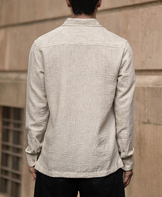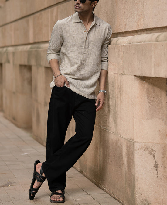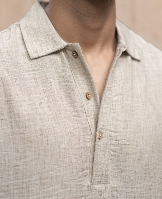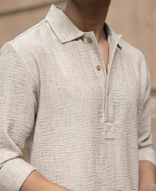 This Light Beige Slub Kurta Shirt's earthy tone and textured weave provide a timeless charm, while the half-placket and curved hemline enhance its smart-casual appeal. A versatile piece that transitions seamlessly from daytime outings to evening get-togethers.