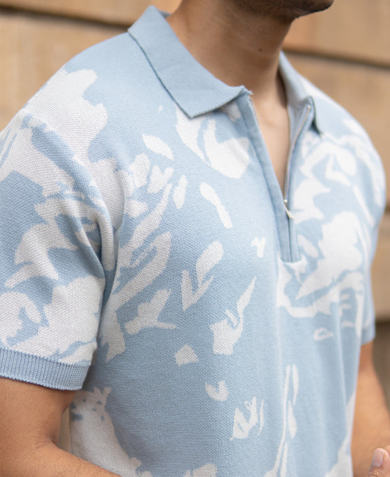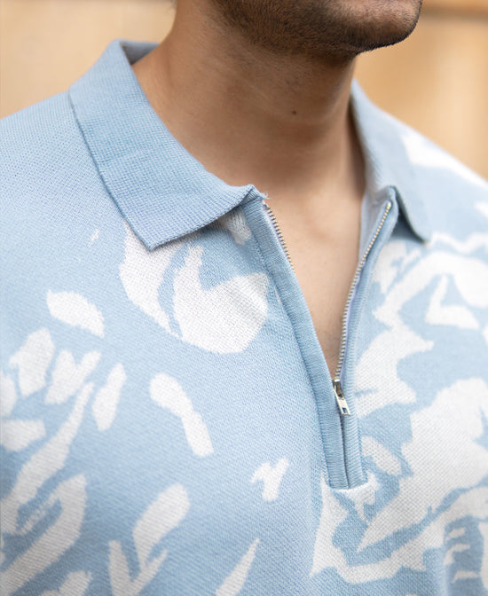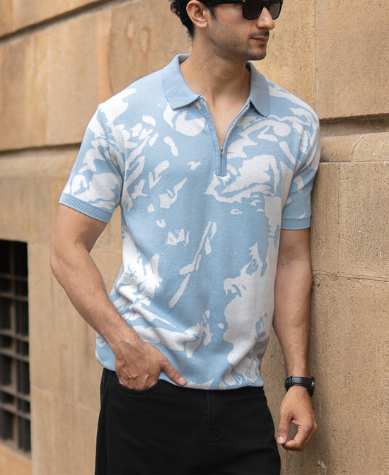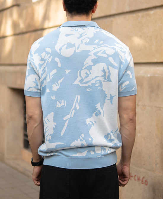 Light Blue Abstract Knit T-Shirt