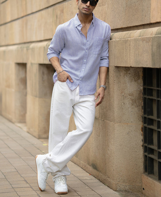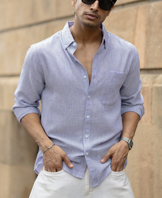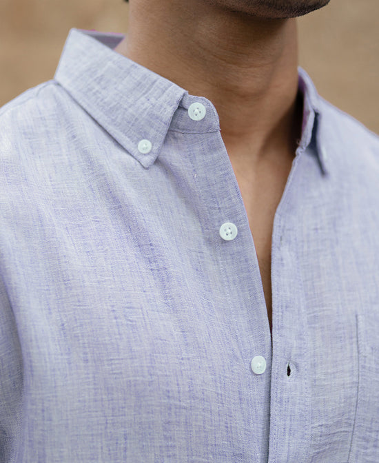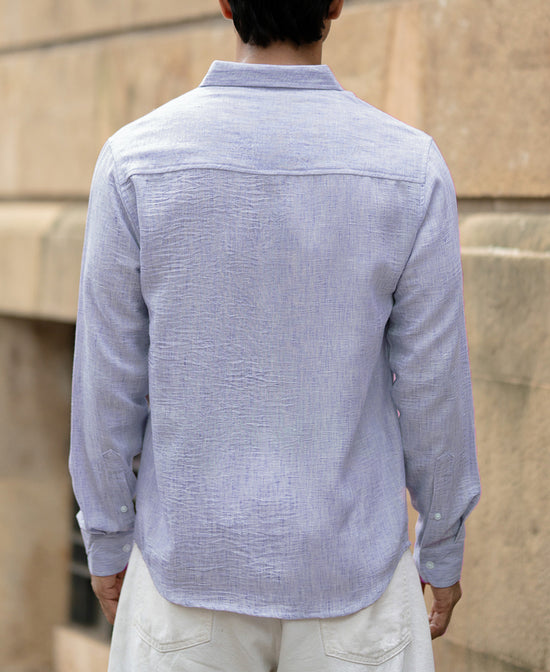 When going easy gets an upgrade. This light blue shirt is built on soft slub texture that adds just enough movement to grab everyone's attention. A staple for summer days or layered fall evenings, it is effortlessly casual, but still noticeable.