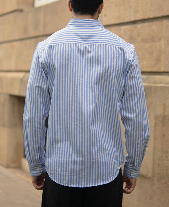Crafted in lightweight cotton, this shirt features vertical light blue stripes on a crisp white base, creating an iconic old money look. Designed with a button-down collar and a chest pocket, it combines ease with subtle sophistication. Perfect for both smart-casual and relaxed weekend dressing, pair it with chinos or denim for effortless styling.