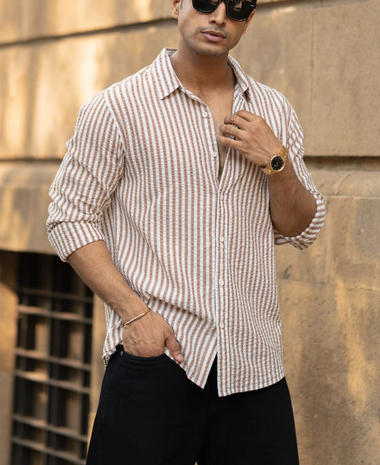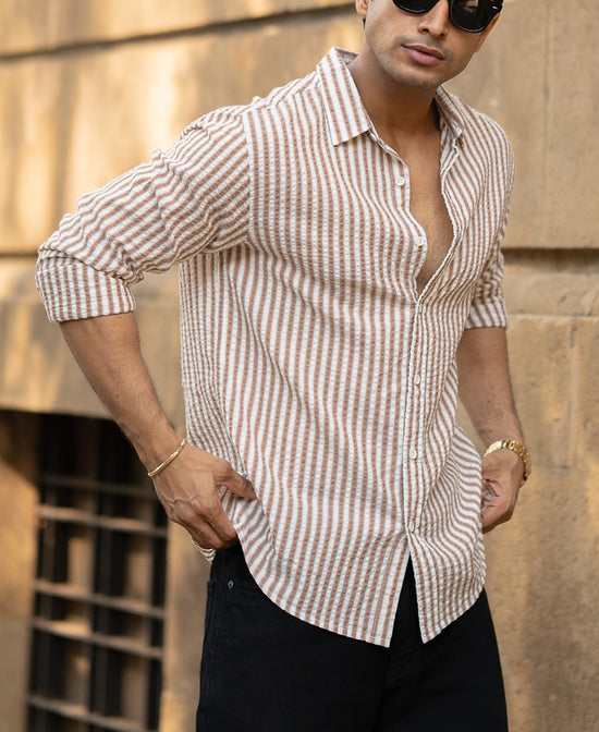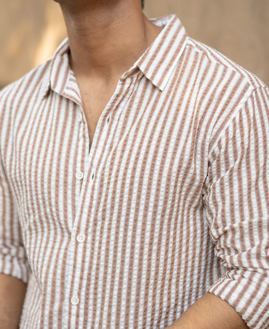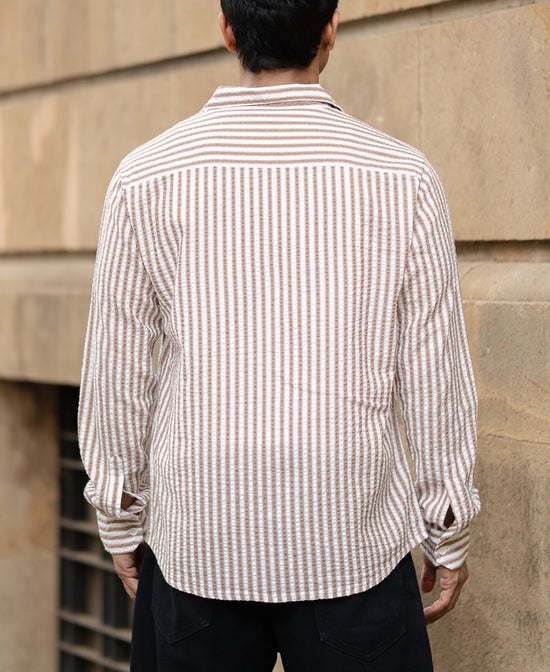 Light Brown Seersucker Stripe Shirt