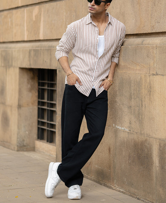 The Light Brown Seersucker Stripe Shirt is made for days when comfort and style need to shake hands. Crafted from lightweight seersucker fabric with subtle stripes, it brings a breezy texture and a laid-back vibe to your wardrobe. Easy to throw on, easier to stand out in, be it heading to weekend brunch or just cruising through the weekdays.