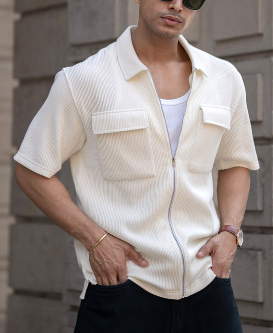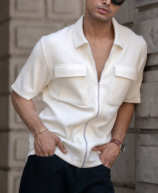 Corduroy, but with a twist. This light fawn oversized half-sleeve shirt brings a retro fabric into modern-day cool. Perfect for layering or solo wear, it’s made for men who like their wardrobe to blend texture with attitude. Comfortable, stylish, and always ahead of the curve.