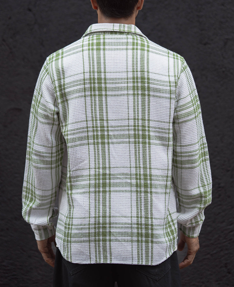 Light Green Waffle Checks Regular Fit Full Sleeves Shirt
