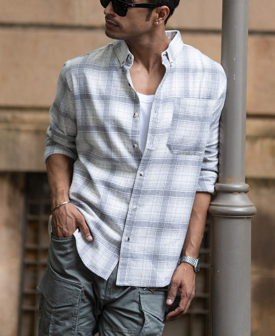 A breathable shirt in muted grey tones that doesn’t scream for attention but definitely turns heads. Whether you button it up for brunch or wear it open with a tee underneath, this one’s made for low-key flexes.