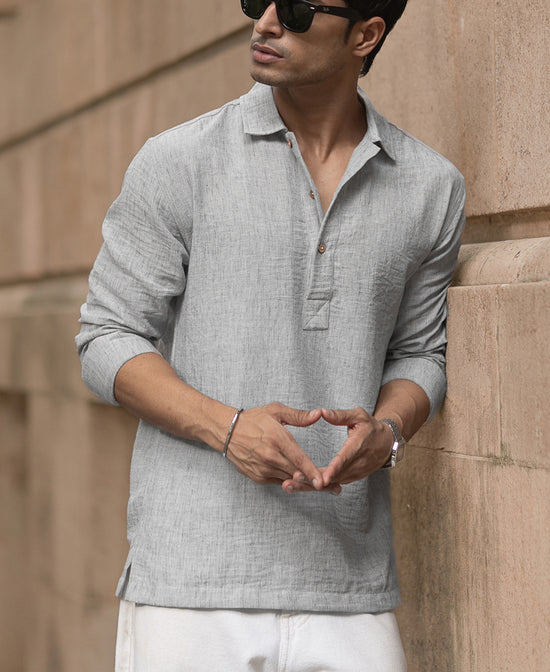 Light Grey Slub Kurta Shirt