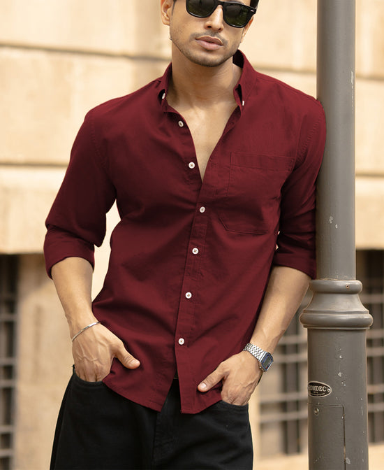 Rich in tone, light in feel. This maroon Oxford shirt balances smart tailoring with a breathable touch. Whether you’re dressing up for a meeting or just want to elevate your basics, this one brings quiet confidence in every stitch