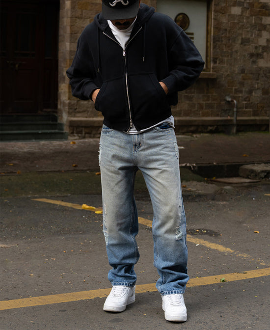 Your new favorite denim for the days when your want to get into the skin of comfort. These mid-blue baggy jeans come with lived-in distressing that feels natural, not overdone. Roomy, rugged, and full of character, they pair effortlessly with everything from oversized tees to crisp shirts.