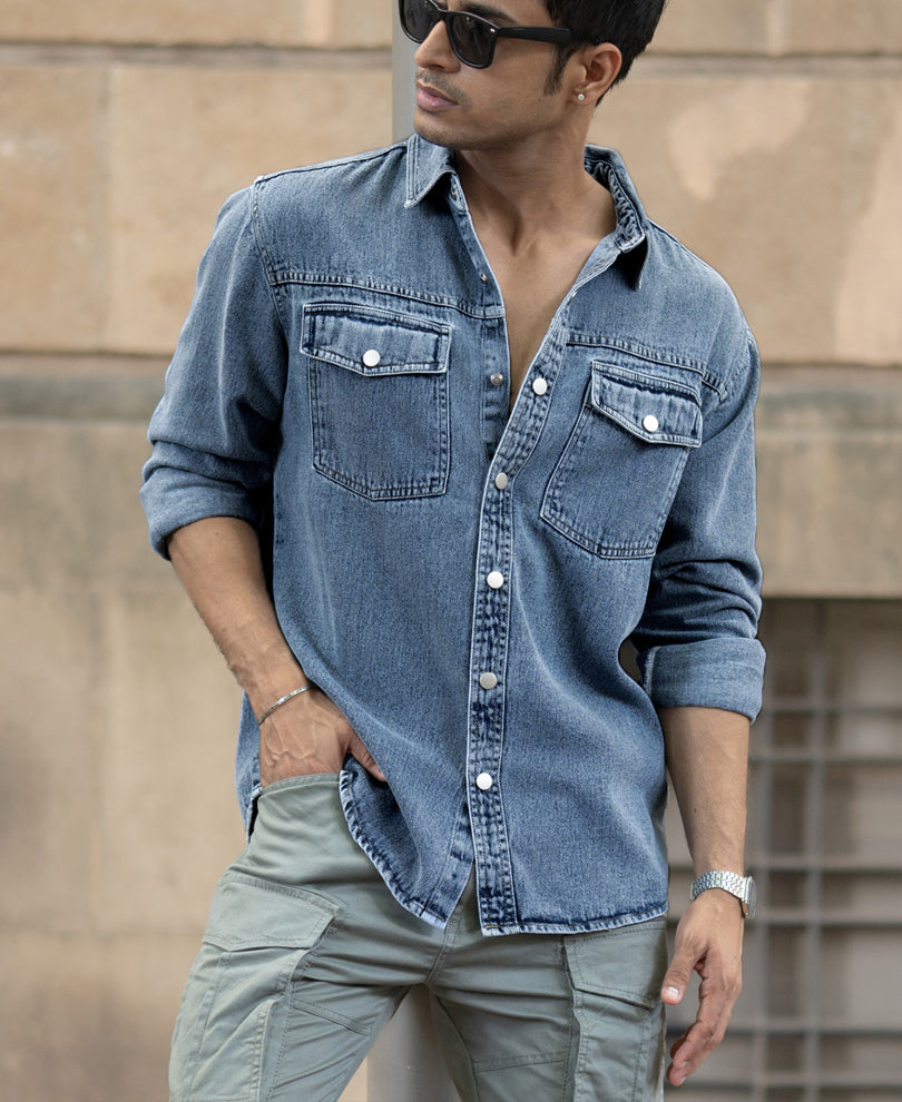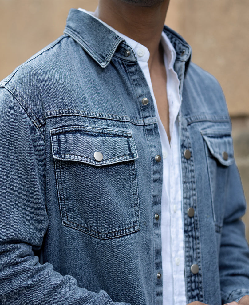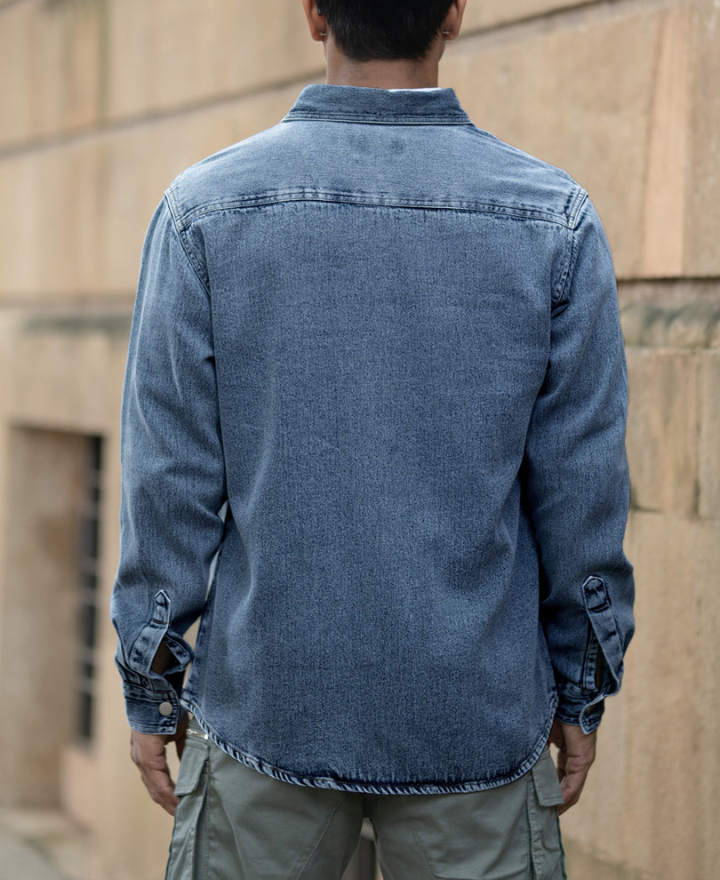 This mid-blue denim overshirt is built for effortless layering. Cut in a regular fit with classic details like chest pockets and metal buttons, it carries a soft washed tone for a lived-in appeal. Works well as a jacket substitute over tees or knits.