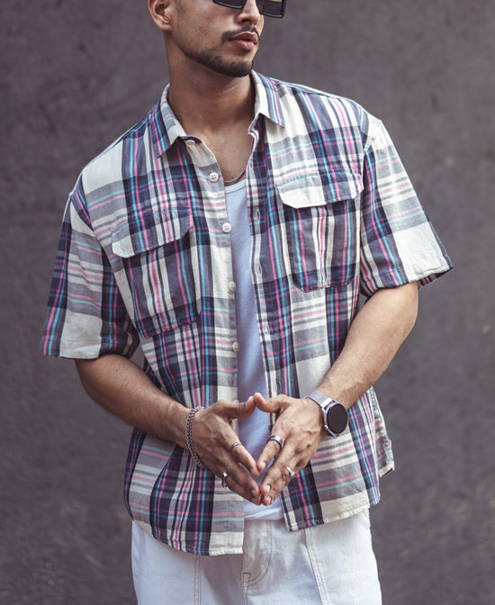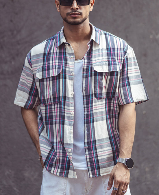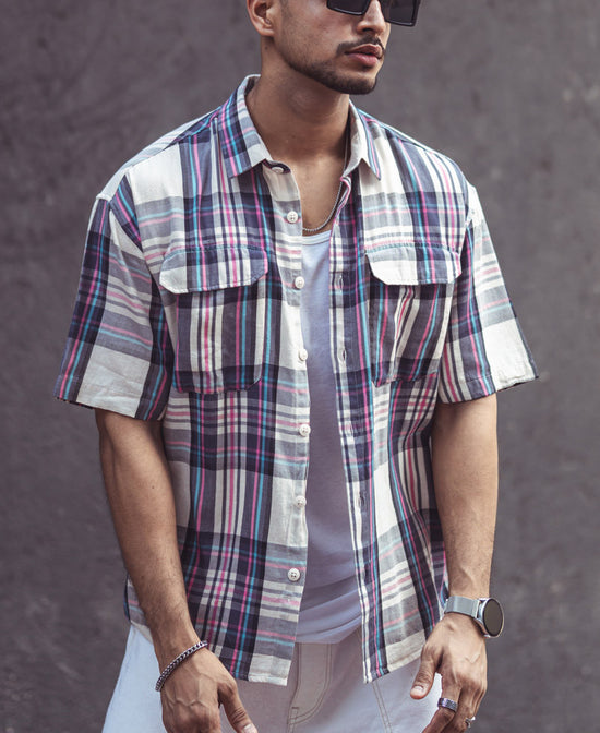 Multi Color Pocket Checks Oversize Drop Shoulder Shirt