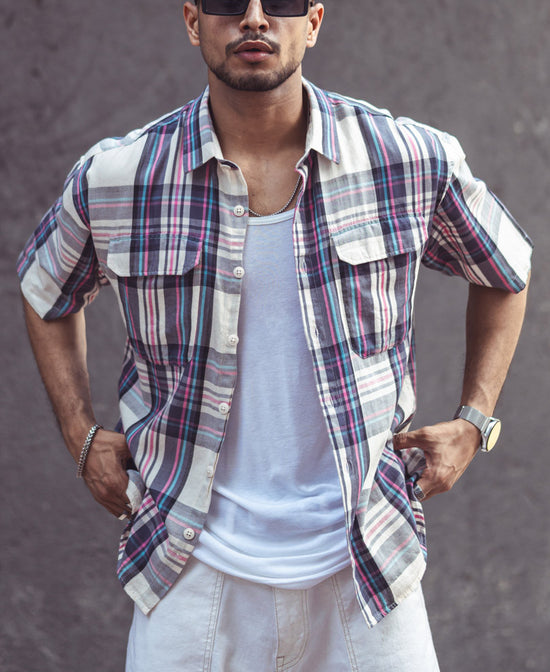 The king of summer casuals, checked shirts for men. This cool fit suits all casual outings. Wear it on weekends and vacations, on the beach, etc. The checked shirt is made of cotton check fabric that keeps you cool and comfortable all day. It has a spread collar, half sleeves, drip shoulders, double chest pockets, and a round hem. Pair it with denim jeans to nail your on-the-go look.