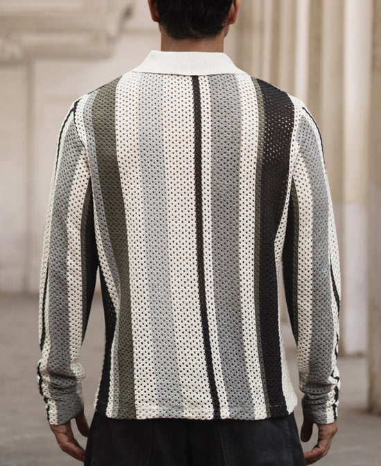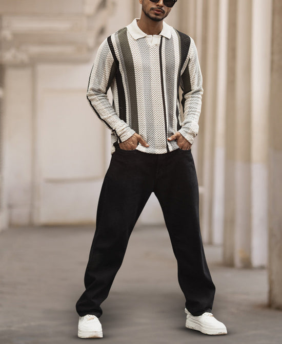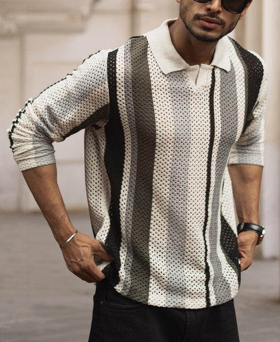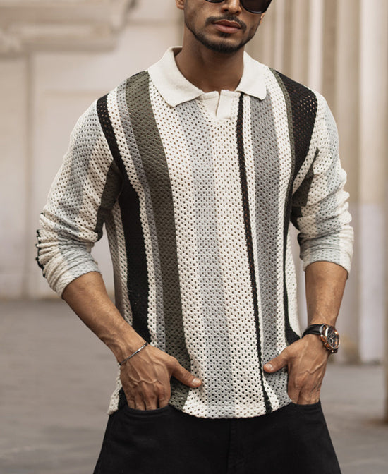 Multi Colour Structured Regular Fit Full Sleeves T-Shirt