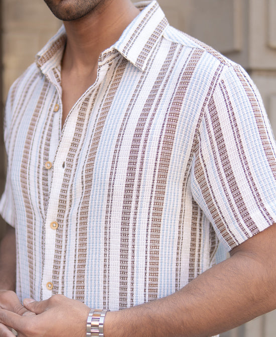 A multi-colour striped shirt that makes looking sharp feel effortless. The structured design keeps it fresh, the regular fit keeps it comfortable, and the half sleeves make it a no-fuss essential. Whether it’s a casual day out or a last-minute plan, this shirt is always in your corner, making you look put-together without even trying.