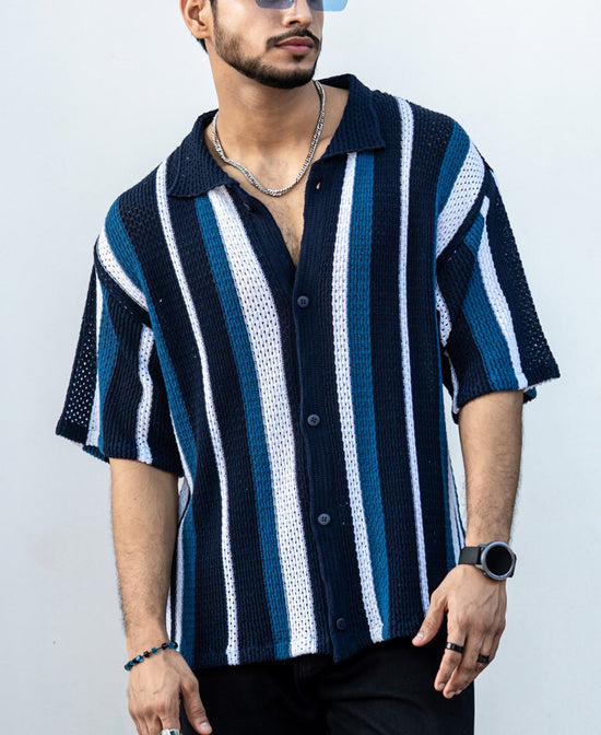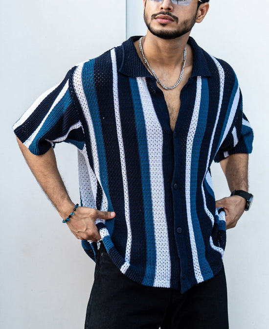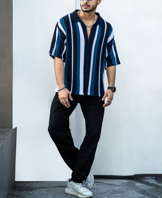 Give a fresh update to streetwear classics with our multicolor crochet striped shirts for men, featuring a resort collar, half sleeves, drop shoulders, and an oversized fit. It's a standout shirt made with crochet fabric for unmatched comfort and style. Pair the striped shirt with jeans to be ready for any plan.
