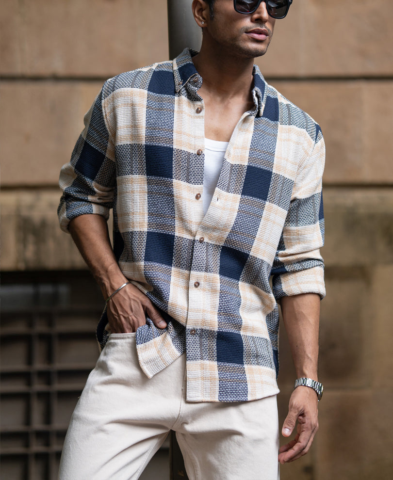 Vibrant yet tasteful, this multicolor checks shirt is where boldness meets balance. The interplay of hues gives it personality, while the structured design keeps it versatile. Whether buttoned up or layered open, it’s always the fun one in the room.